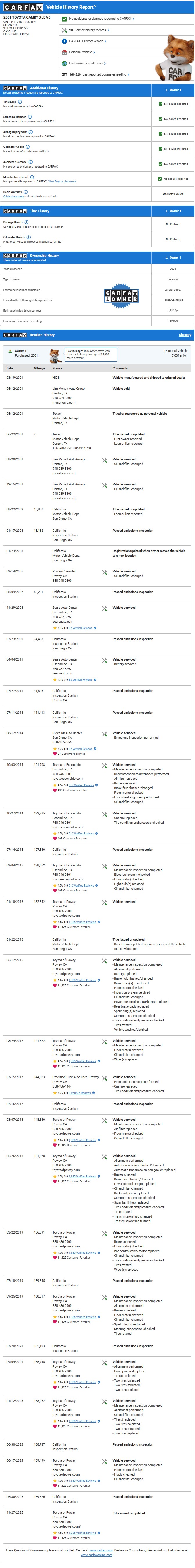 2001 Toyota Camry XLE 3.0L V6 4-Spd Auto 170K