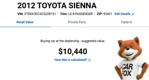 2012 Toyota Sienna LE w/ Leather 2WD 3.5L V6 8-Passenger