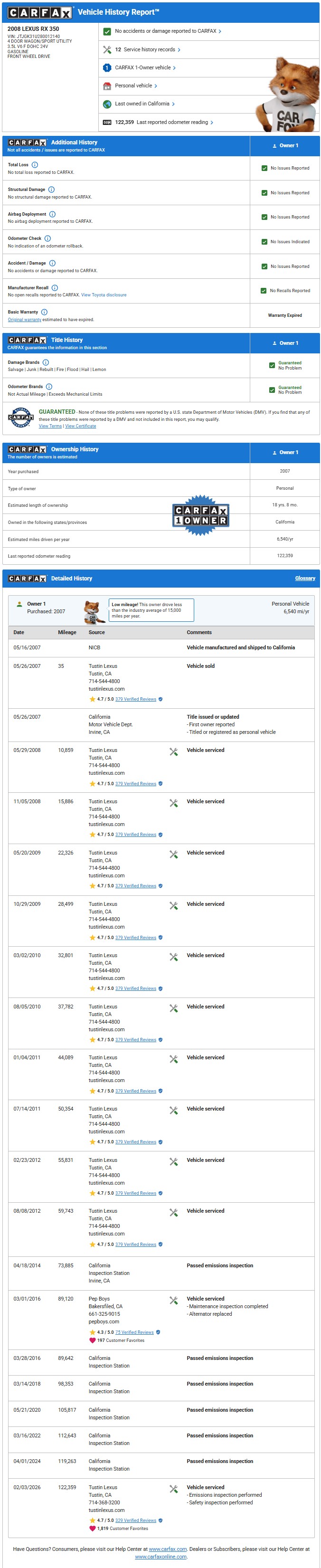 2008 Lexus RX 350 Premium Plus 3.5L V6 2WD Auto 122K