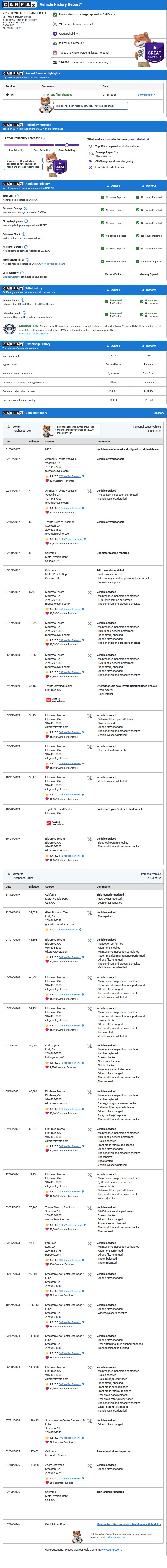 2017 Toyota Highlander XLE AWD 3.5L V6 8-Spd Auto 3rd Row 144K