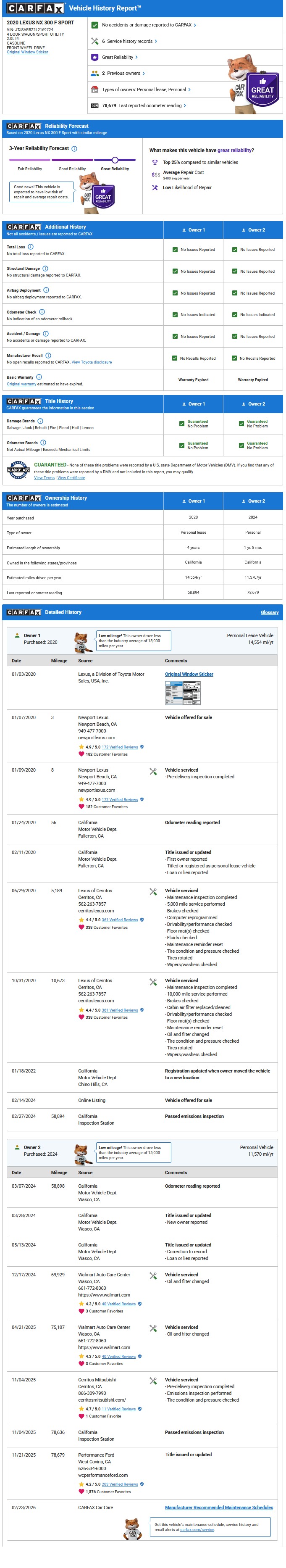 2020 Lexus NX 300 F SPORT 2.0L 4-Cyl Turbo 6-Spd Auto 79K