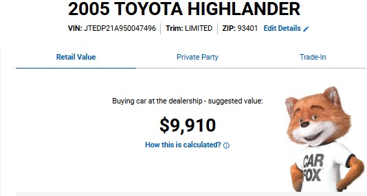 2005 Toyota Highlander Limited V6 2WD 3.3L 5-Spd Auto 3rd Row