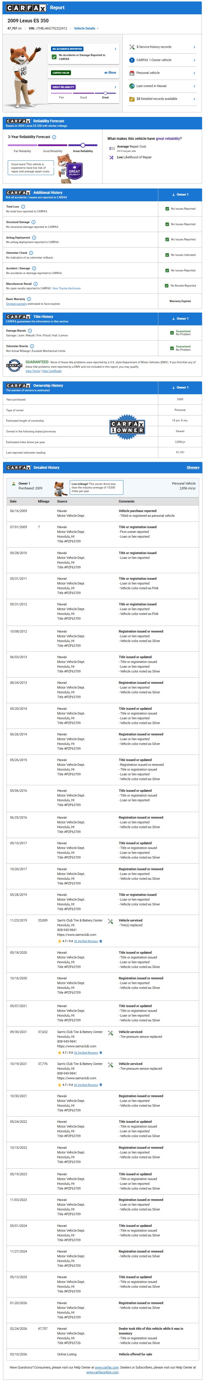 2009 Lexus ES 350 Sedan 3.5L V6 6-Spd Auto 48K