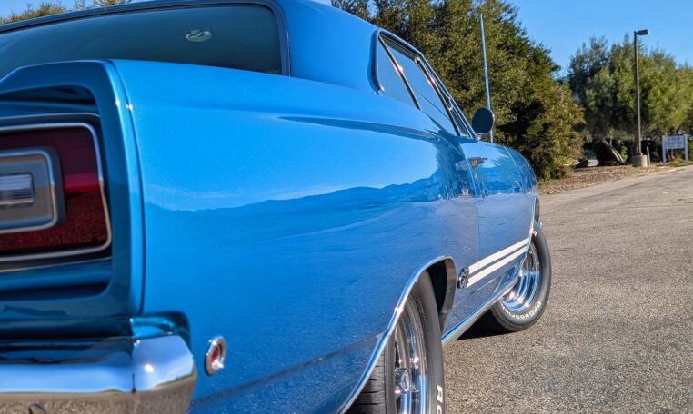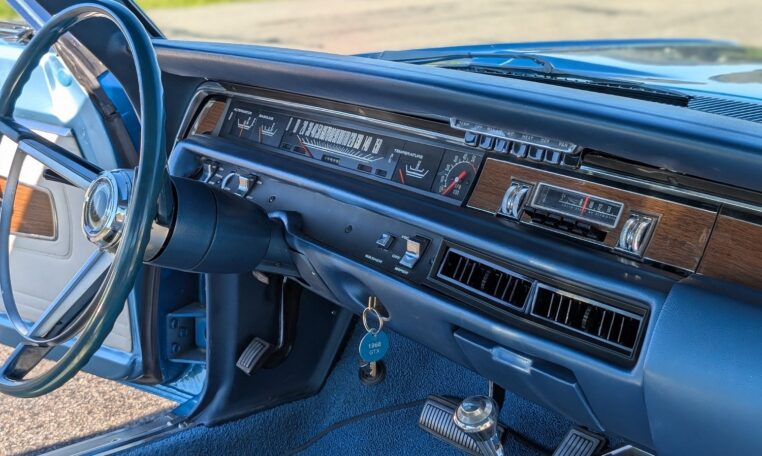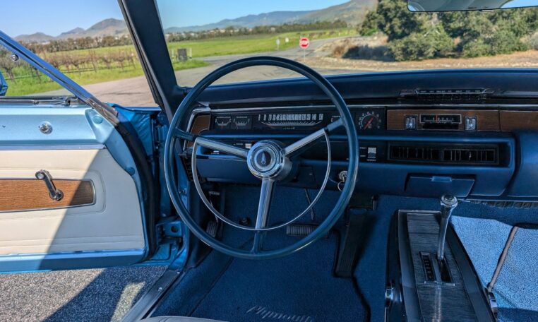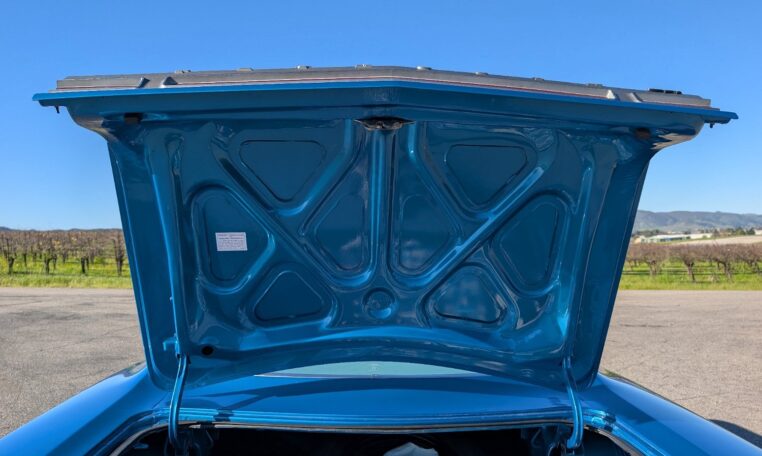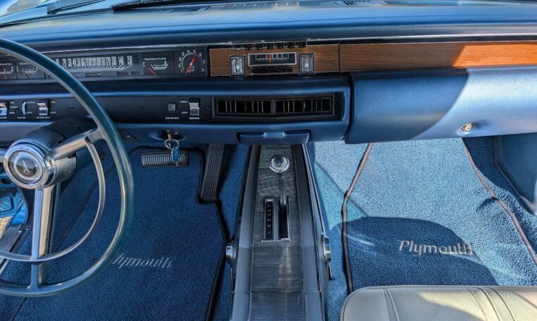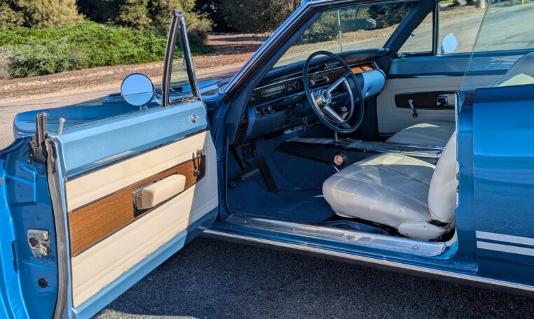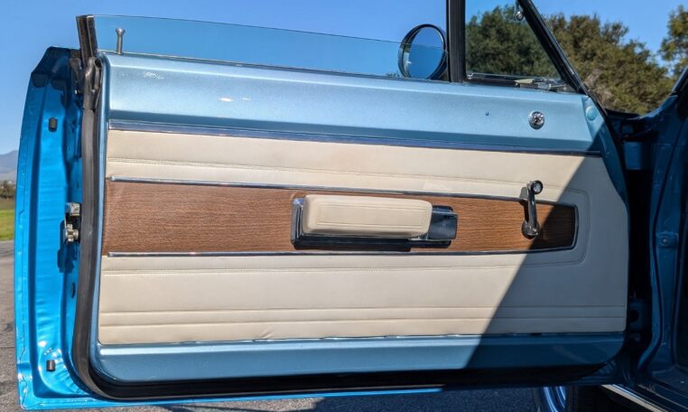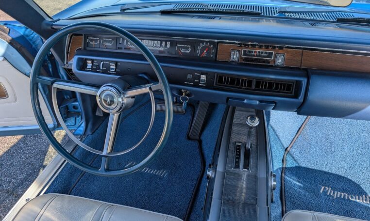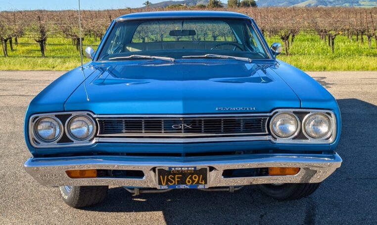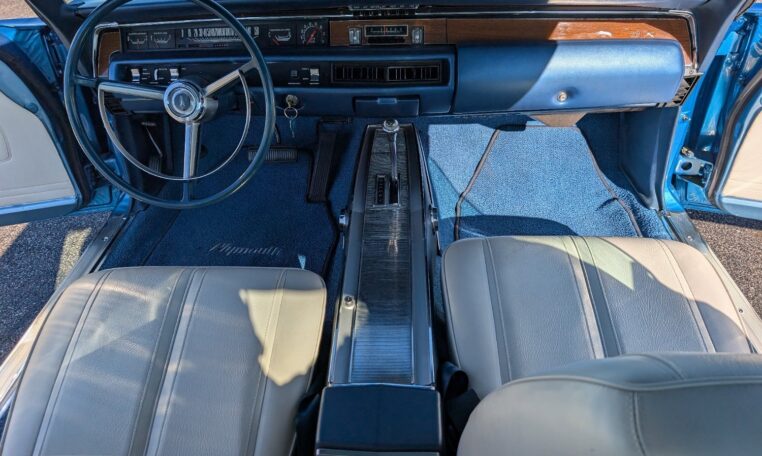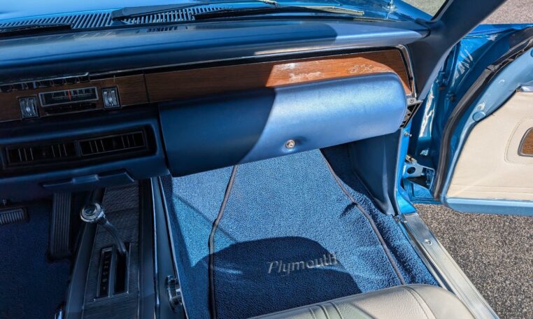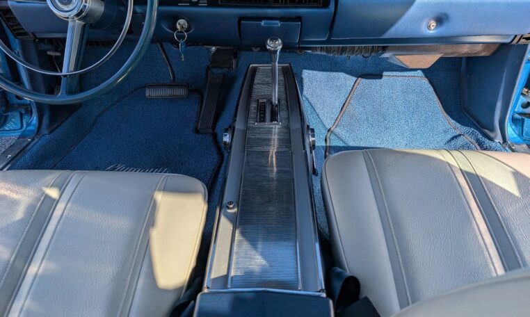 For the 1968 model year, Plymouth produced a total of 18,272 GTX models, with the vast majority—17,246 units—being the 2-door hardtop coupe like this one, and only 1,026 convertibles. Among these, just 410 coupes were equipped with the high-performance 426 Hemi engine, making the standard 440-equipped versions more common but still collectible. Specific breakdowns by color are not widely documented, but Frost Blue Metallic was one of the available hues in Plymouth’s palette that year, contributing to its rarity in well-preserved examples. This combination of body style, color, and California provenance makes this GTX a standout in a production run that emphasized limited-volume muscle over mass appeal.