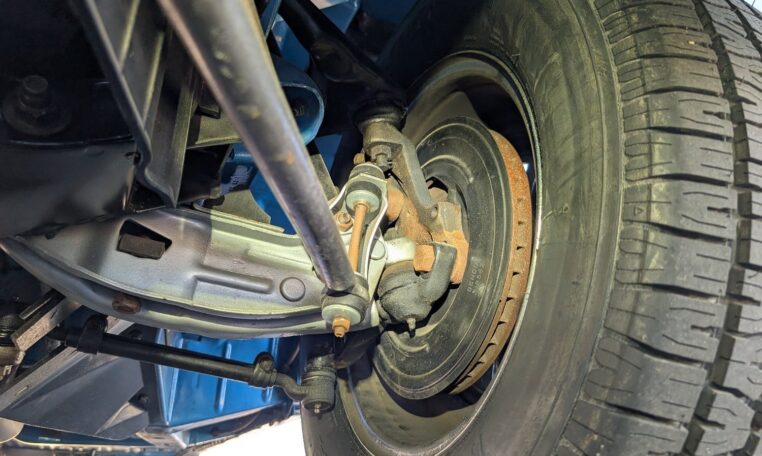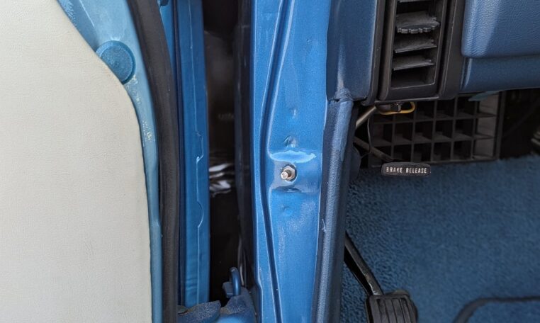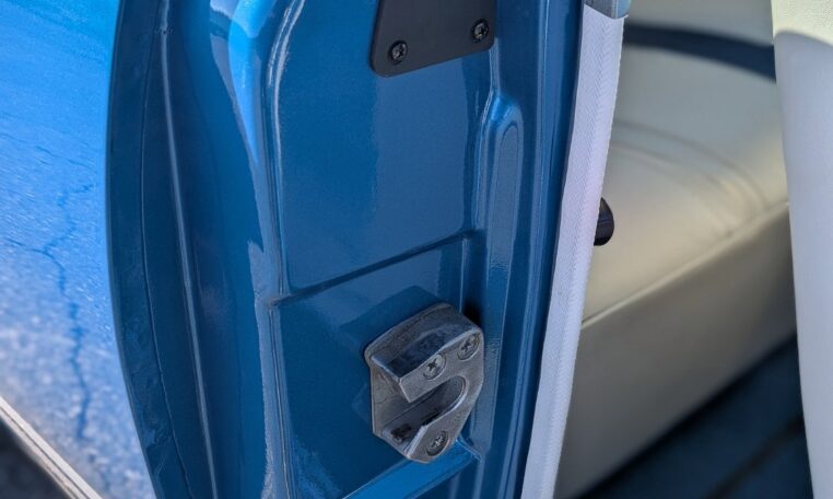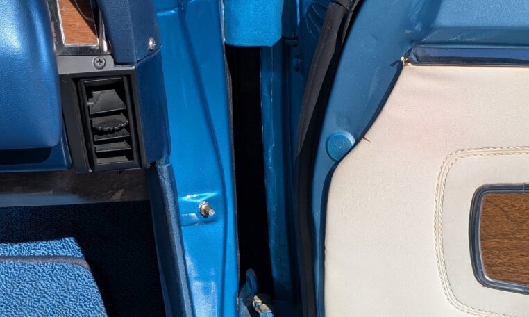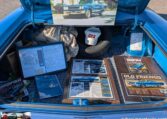 Step-by-step we took the old ones apart, stripped off the anodizing by hand with 80-grit, and with progressive finer sandpaper and polish got them looking beautiful. Countless hours were spent in this stage of final assembly making sure everything was as close to how it was when it left the factory. Once we received the new seat covers, headliner, and carpet, we sent it out to the upholstery shop. After a week of worrying about it, she came back looking gorgeous, and we could now finish up all the little details yet remaining. The last items on order were the Magnum 500 wheels and the redline Goodyears. While waiting on those we finished the trunk carpet, spare tire, lack, and hold down. After four years, it didn’t dawn on me that we were actually done, completely out of things to do, until my brother held up the spare tire hold-down J-bolt and while up the spare tire hold-down J-bolt and while we were actually done.