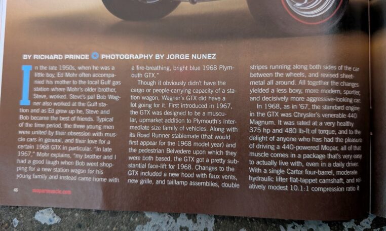 It gave my brother and I a compelling reason to get together much more than we otherwise would have, and on many occasions, Bob would come over to lend a hand. We are looking for another suitable car like our ’68 GTX! We will never be another car like our ’68 GTX!”This GTX isn’t just a car—it’s a rolling testament to camaraderie and craftsmanship, ready for its next chapter.