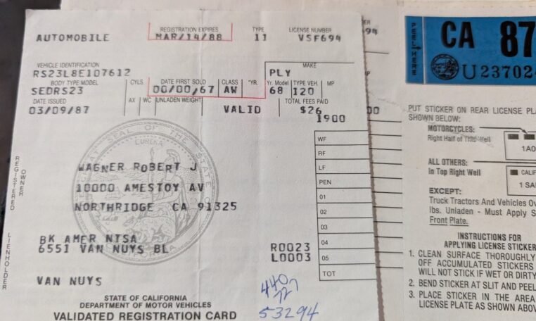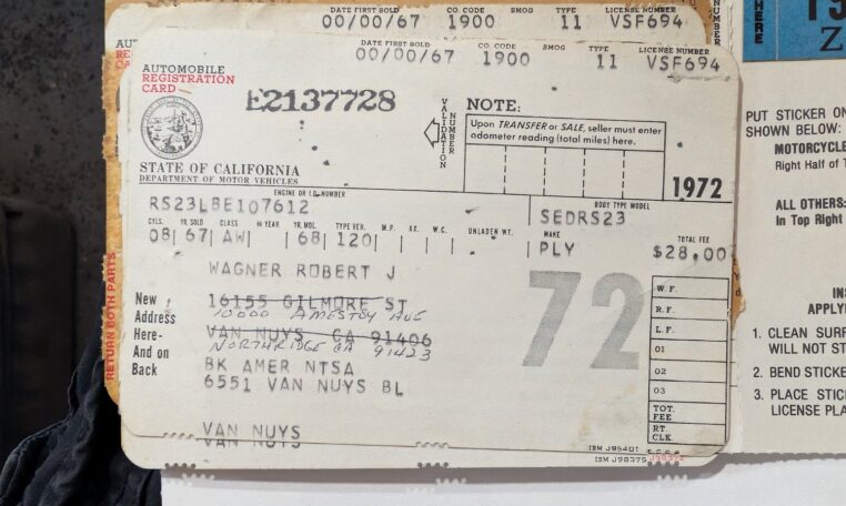 The story of this GTX is one of lifelong friendships and passion for classic cars, as detailed in its magazine feature. In the late 1950s, young Ed Mohr would accompany his mother to the local Gulf gas station in Camarillo, California, where his older brother Steve worked alongside their pal Bob Wagner. As Ed grew up, the three became inseparable, bonded by their love for muscle cars—especially the 1968 GTX. Bob Wagner purchased this very car on October 7, 1967, from Van Nuys Plymouth dealer Mashak Motors, drawn to its fire-breathing performance and upscale styling. He enjoyed it thoroughly for about six years until the 1973 oil crisis parked it reluctantly, with nations cutting production and raising OPEC prices, making fuel-guzzling big-blocks like this one less practical.
