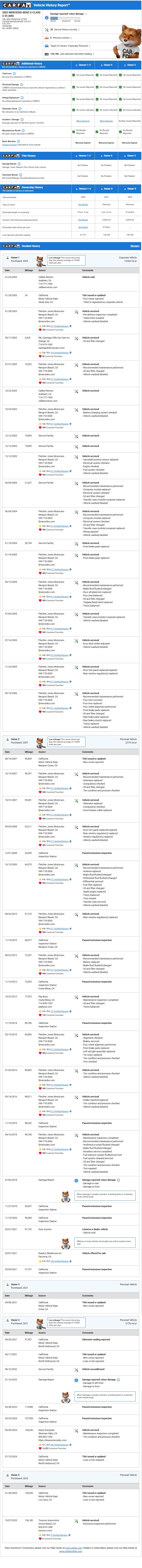 • Clean Carfax and Title: Two minor damage reports (2018 and 2023) were cosmetic and repaired professionally; clean California title with no liens or salvage issues.