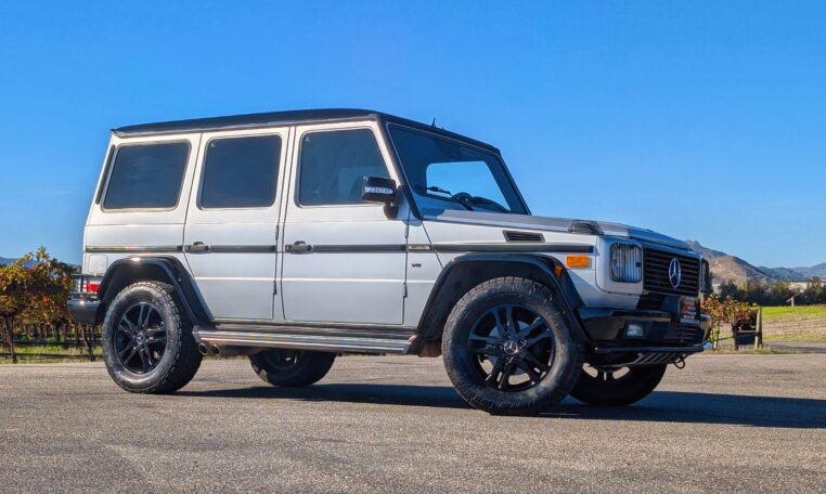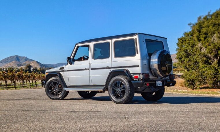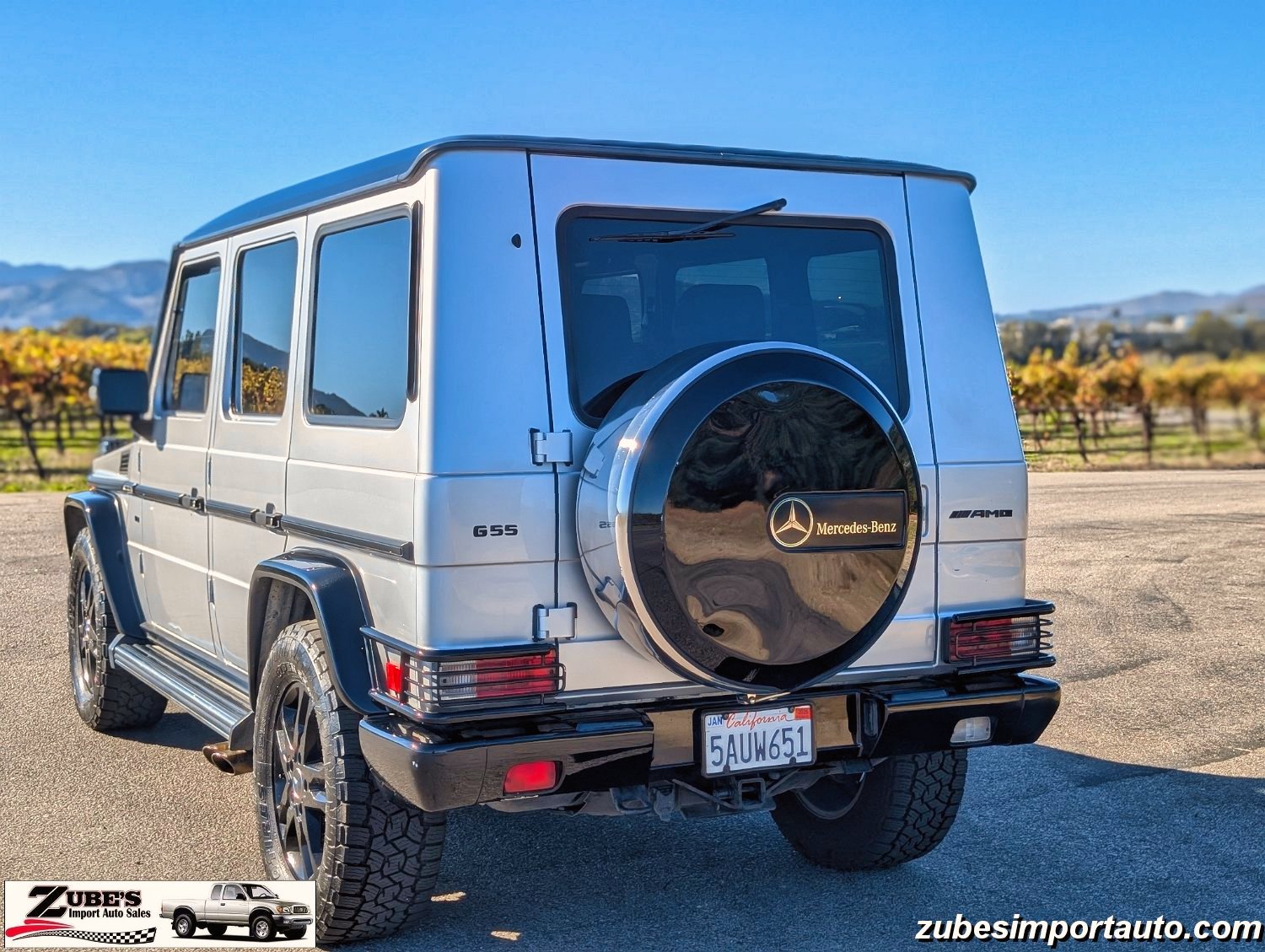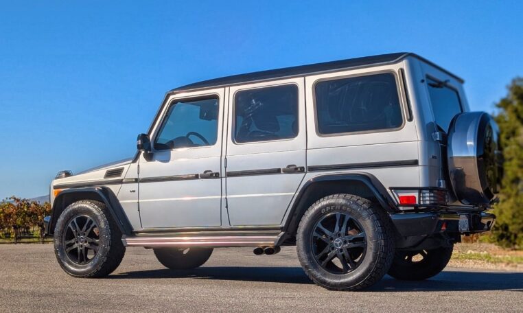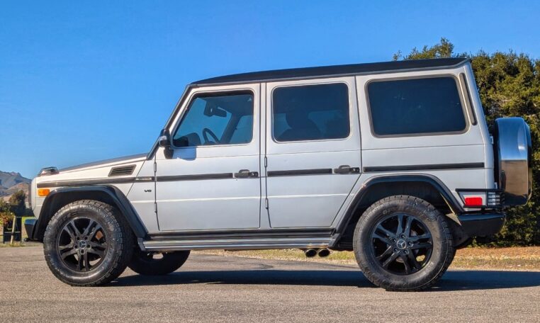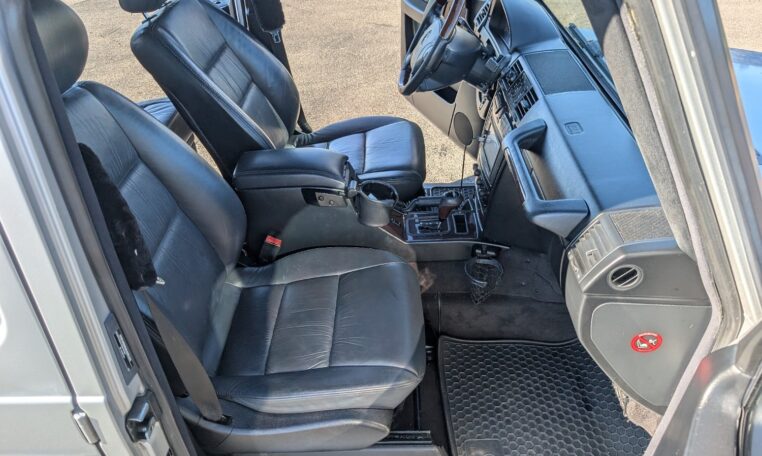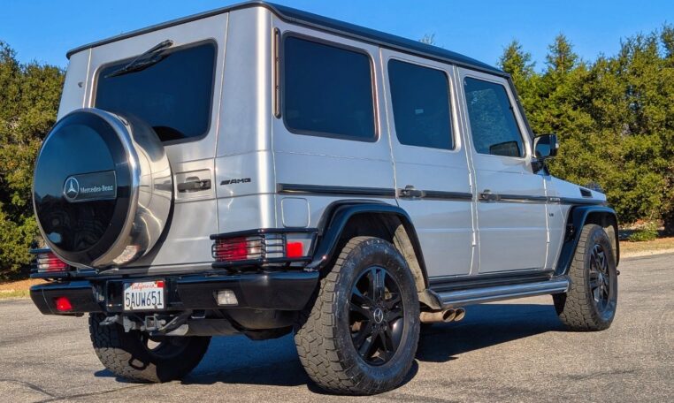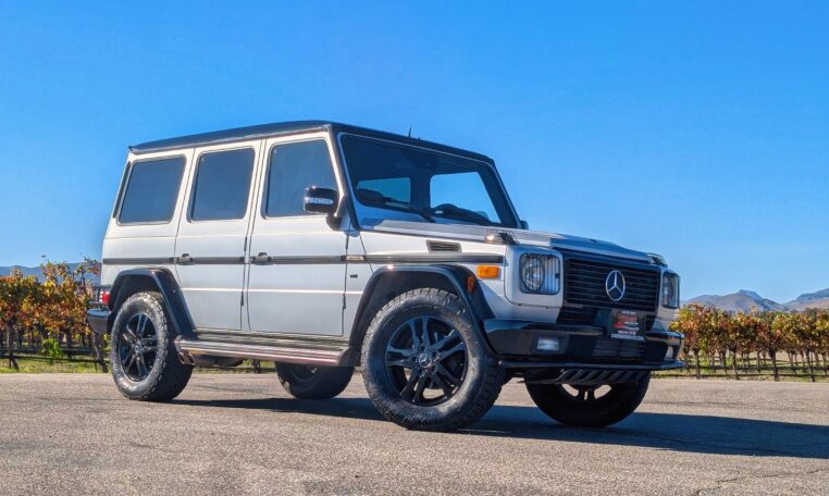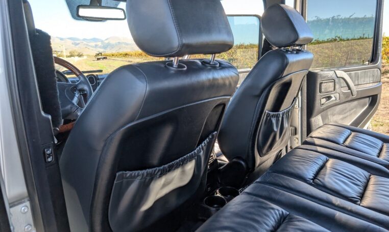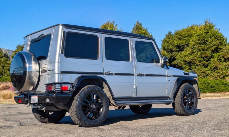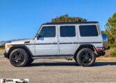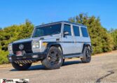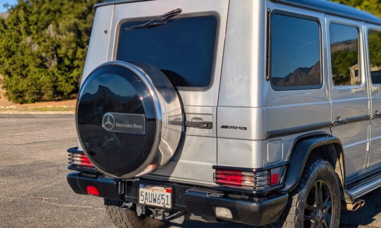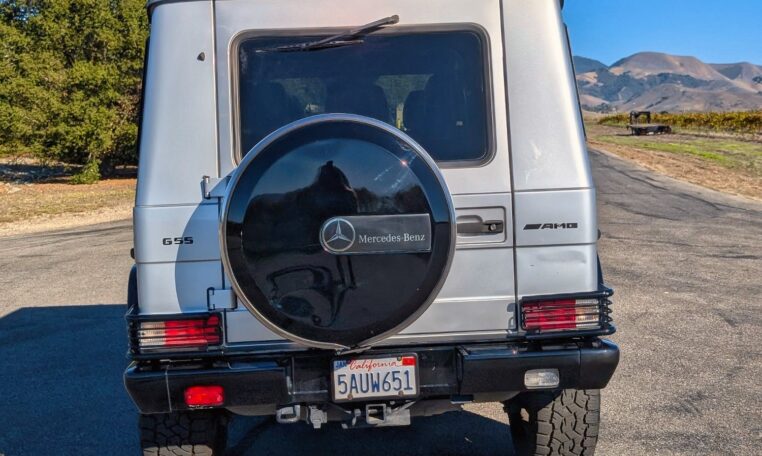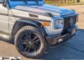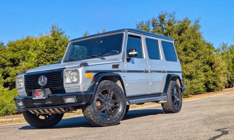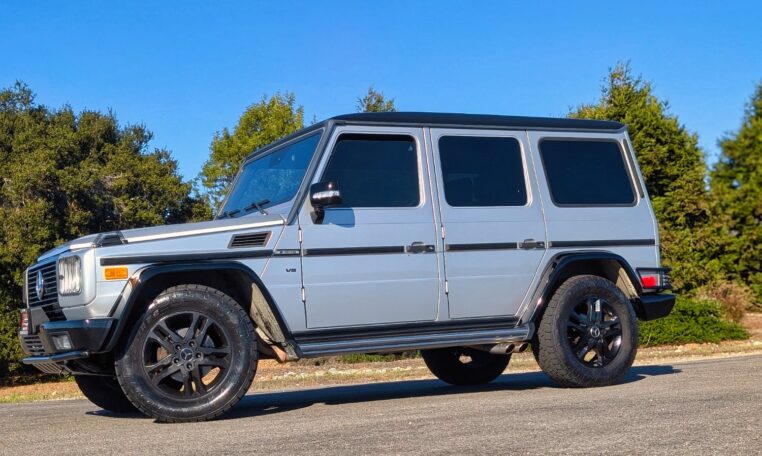 Here’s the G-Wagon you’ve been looking for! Locally owned 2003 Mercedes G55 AMG Designo with only 136k original miles! Finished in Silver Metallic with black leather interior. The DESIGNO custom package includes black OEM 18″ Mercedes wheels wrapped in new TOYO Open Country A/T tires, gloss black fender flares, tinted windows, black roof, front and rear gloss black bumpers with front lower bumper guard bar, taillight guards, and front headlight protection guard grills that set this G55 off. Most of the Silver G Wagon’s on the market have color-matched front and rear bumpers with zero contrast so this one stands out from the rest. The engine was hand-assembled in a dedicated AMG facility in Affalterbach, Germany- the 5.4 Liter V8 paired with a 5-speed automatic transmission and triple-lock differential! Well maintained with a majority of its services coming from Fletcher Jones Motorcars of Newport Beach, CA.
