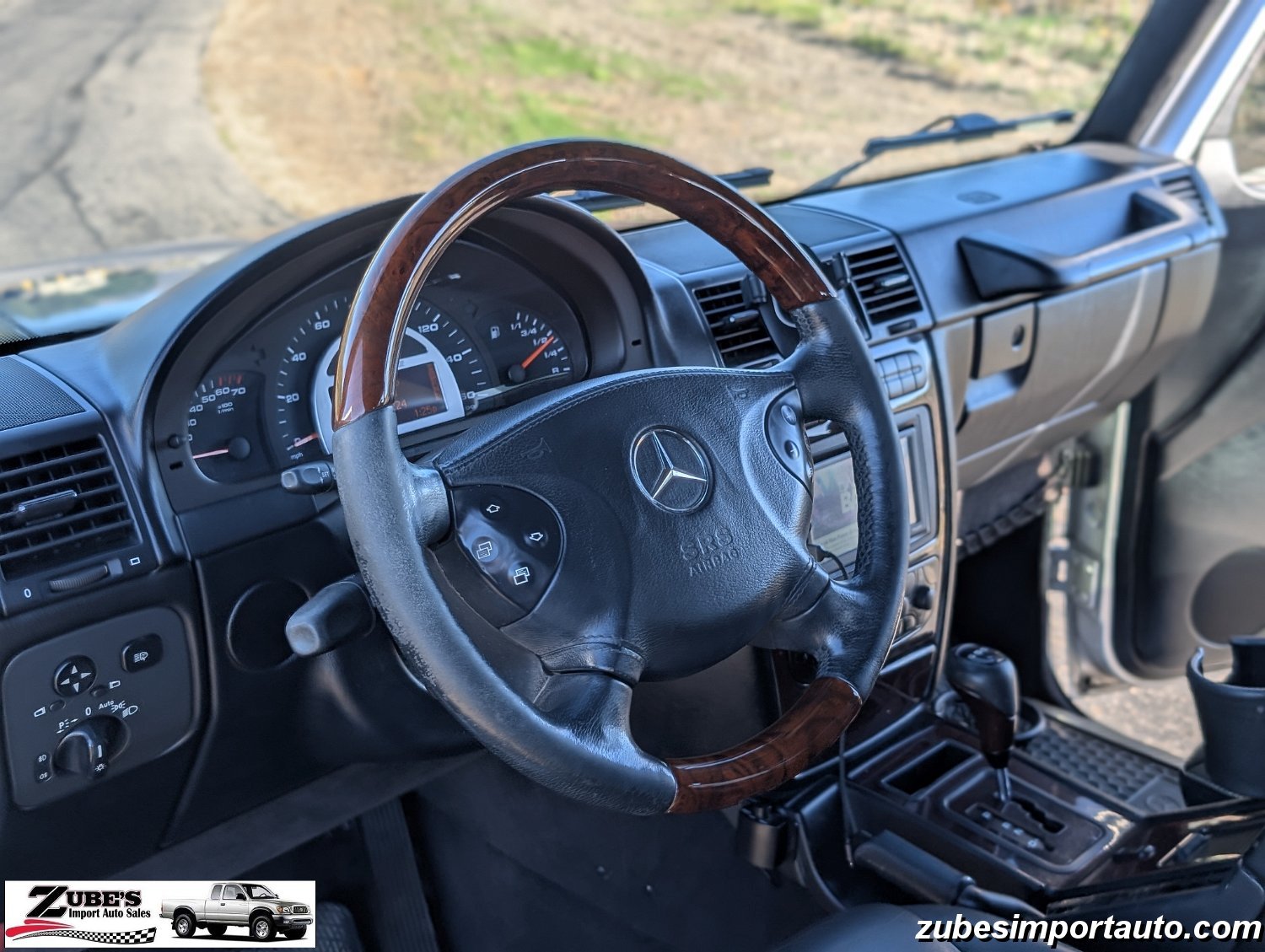 As a Designo edition, this G55 features Mercedes’ customization program, which entailed premium materials and exclusive options not available on standard models. Designo included hand-stitched Nappa leather, unique color combinations like the Silver Metallic with piano black accents, and interior trims like maple wood for a bespoke feel. Exterior enhancements such as the piano black fender flares, bumpers, guards, grille, and light surrounds add sophistication, while the black roof and wheels create a stealthy aesthetic. Designo elevated the G55 from rugged to refined, increasing rarity and value—often commanding 20-30% premiums at resale even at higher miles.