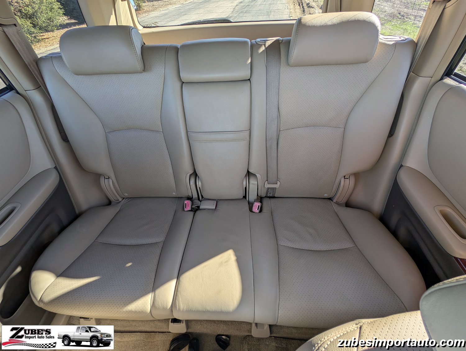 The 2005 Toyota Highlander Limited 2WD is powered by a 3.3-liter V6 engine (3MZ-FE) with Variable Valve Timing-intelligent (VVT-i), producing 230 horsepower at 5,600 rpm and 242 lb-ft of torque at 3,600 rpm. Paired with a 5-speed automatic transmission, it offers smooth and responsive performance, achieving a 0-60 mph time of around 7.9 seconds—impressive for its class, as noted in historical Car and Driver reviews. Fuel economy is rated at 18 MPG city and 24 MPG highway, with a combined 20 MPG, which is respectable for a V6-powered midsize SUV with 3rd row seating, though it requires premium unleaded fuel for optimal output. The 19.8-gallon fuel tank provides a decent range for long trips. Equipped with the optional towing package, this Highlander can tow up to 3,500 pounds, making it suitable for light loads like small trailers, boats, or campers—a capability that enhances its family utility. These figures showcase its balance of power and efficiency, ideal for daily driving or weekend adventures.