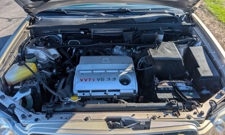 Engine: 3.3L V6 with 230 hp and 242 lb-ft of torque, Camry-derived.