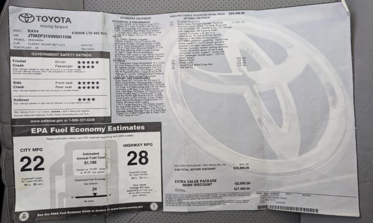 For a prospective buyer craving a compact SUV with luxury, reliability, and a well-documented history, this 2009 Toyota RAV4 Limited 4-Cylinder 2WD is a perfect match. Its moderate mileage, extensive service history, and top NHTSA safety ratings make it a trustworthy companion, while the Limited trim’s upscale features and efficient 2.5L engine enhance its appeal. Whether you’re drawn to its smooth performance, spacious interior, or the third generation’s enduring design, this RAV4 delivers. It’s a testament to the RAV4’s popularity—reliable, versatile, and built to last. Take it for a test drive to experience why this 2009 model remains a beloved choice over a decade and a half later, ready to serve its next owner with the same dependability it’s always offered.