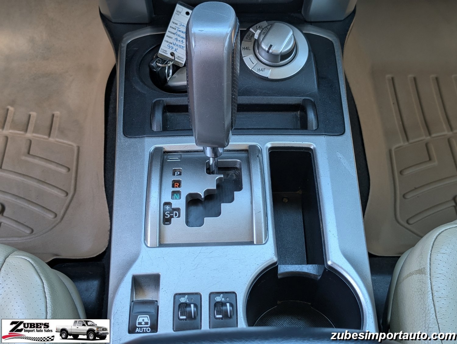 The 2011 4Runner Limited is powered by Toyota’s proven 4.0L V6 engine producing 270 horsepower and 278 lb-ft of torque. It is paired with a smooth 5-speed automatic transmission and part-time 4WD with a low-range transfer case. EPA-estimated fuel economy is 17 mpg city / 22 mpg highway / 19 mpg combined for the 4×4 model. While not the most fuel-efficient SUV in its class, the V6 delivers strong low-end torque and confident passing power, especially when loaded or towing (up to 5,000 lbs when properly equipped). Real-world owners commonly report 18–20 mpg in mixed driving.