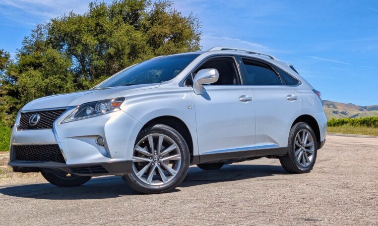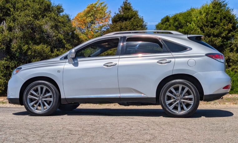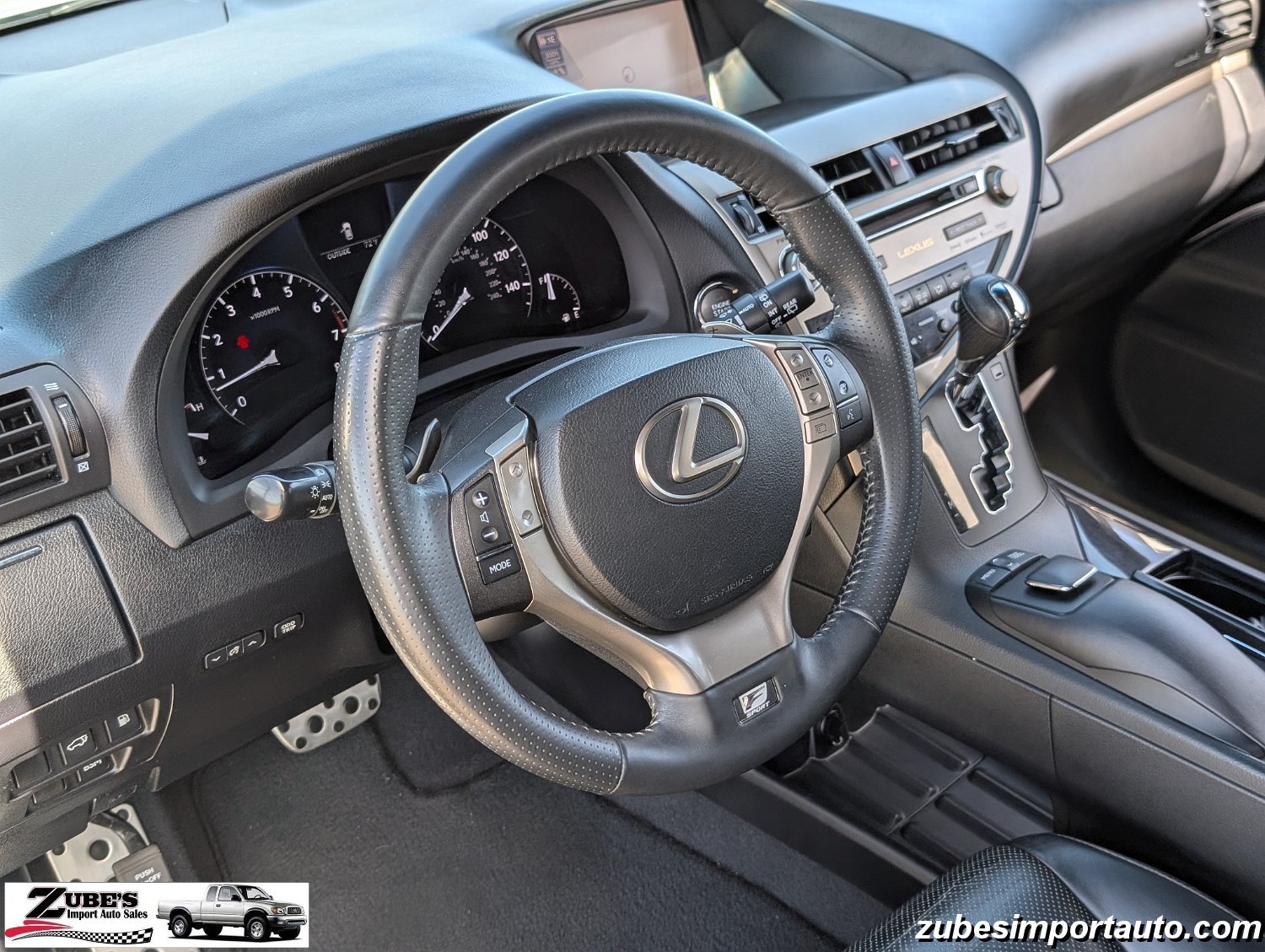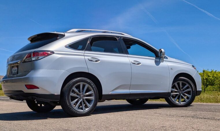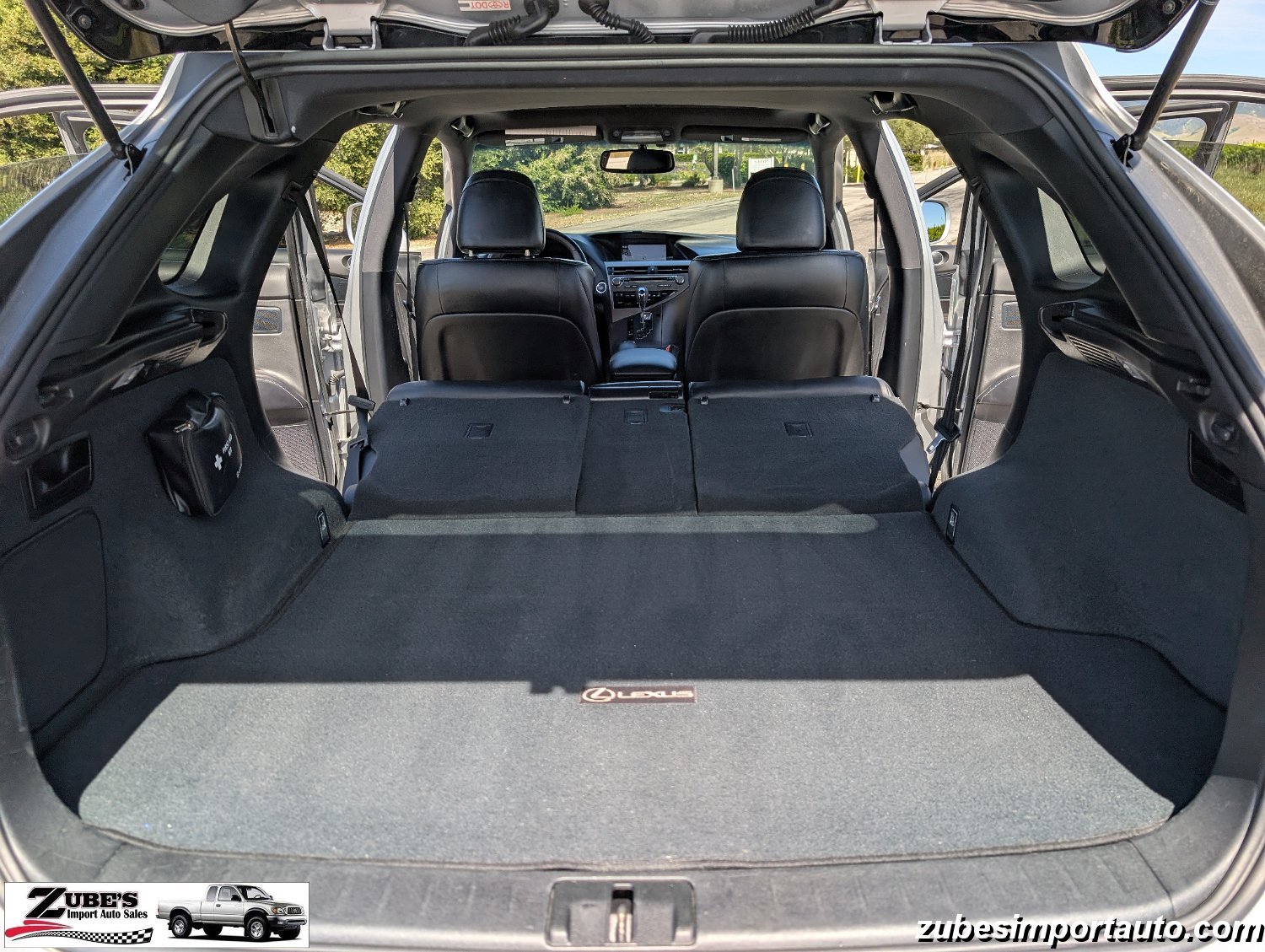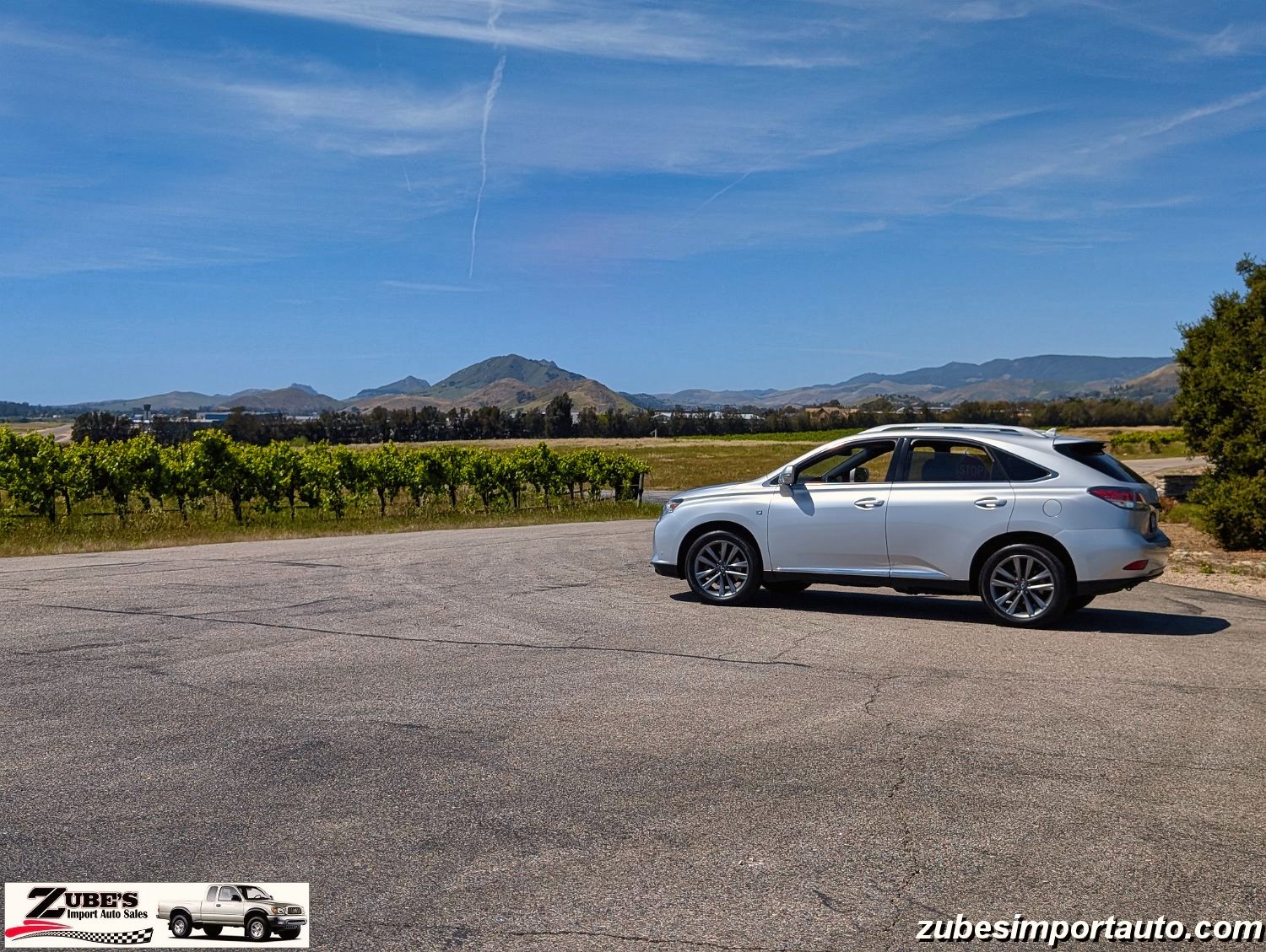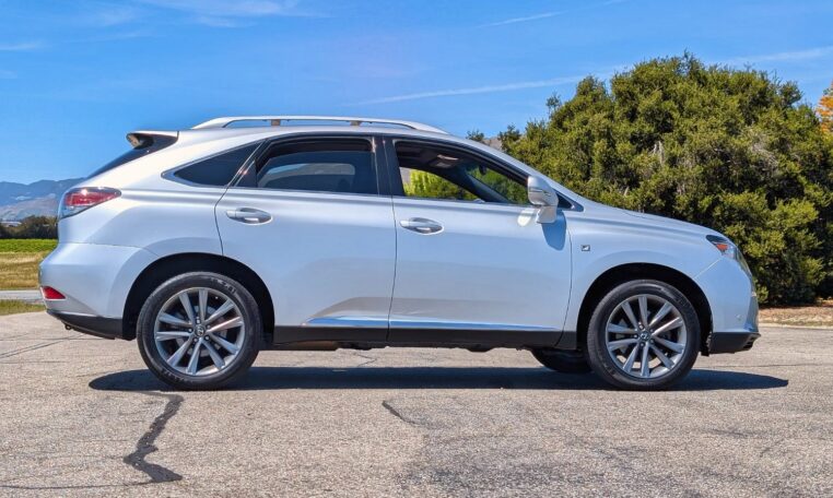 Rare and hard to find 2013 Lexus RX 350 F Sport All-Wheel-Drive with 136k original miles, 18 Carfax service records, and a Clean California title. The perfect mid-size luxury SUV with solid off-roading capabilities from its full-time 4WD system. Finished in Silver Lining Metallic with black leather interior. Powered by the 3.5L V6 (with a metal timing chain you never have to replace) paired to a 5-speed automatic transmission with paddle-shift drive-mode. Fully loaded with all of the best options including heated front seats, push-button start, backup camera, Bluetooth handsfree calling, AUX input, moonroof, 19″ premium wheels, dual front/side curtain airbags, fold-flat rear seats, roof racks, blind-spot monitors, parking sonar, driver seat memory, garage link, and much more. Well maintained with the majority of services coming from Tustin Lexus in Tustin, CA. Don’t miss out- this won’t last long!