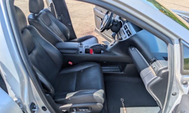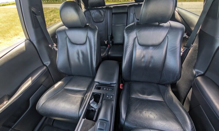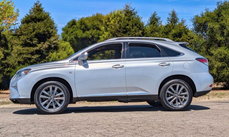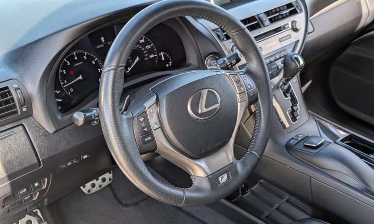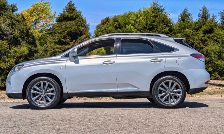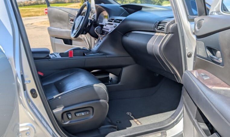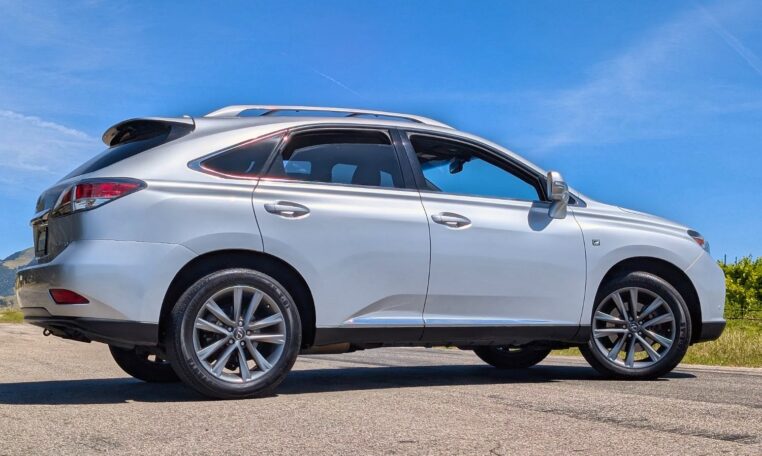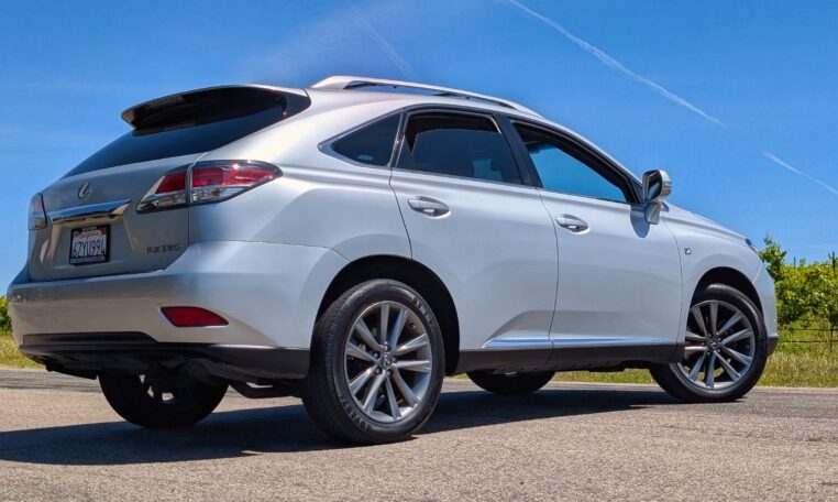 The F Sport was the sportiest trim in the RX 350 lineup, positioned between the base model and the top Luxury package. It added a more aggressive appearance and enhanced driving dynamics without sacrificing the RX’s legendary comfort. Key F Sport upgrades included a sport-tuned suspension, 19-inch dark graphite alloy wheels, F Sport badging, perforated leather seating with contrast stitching, aluminum pedals, and a sport steering wheel with paddle shifters.