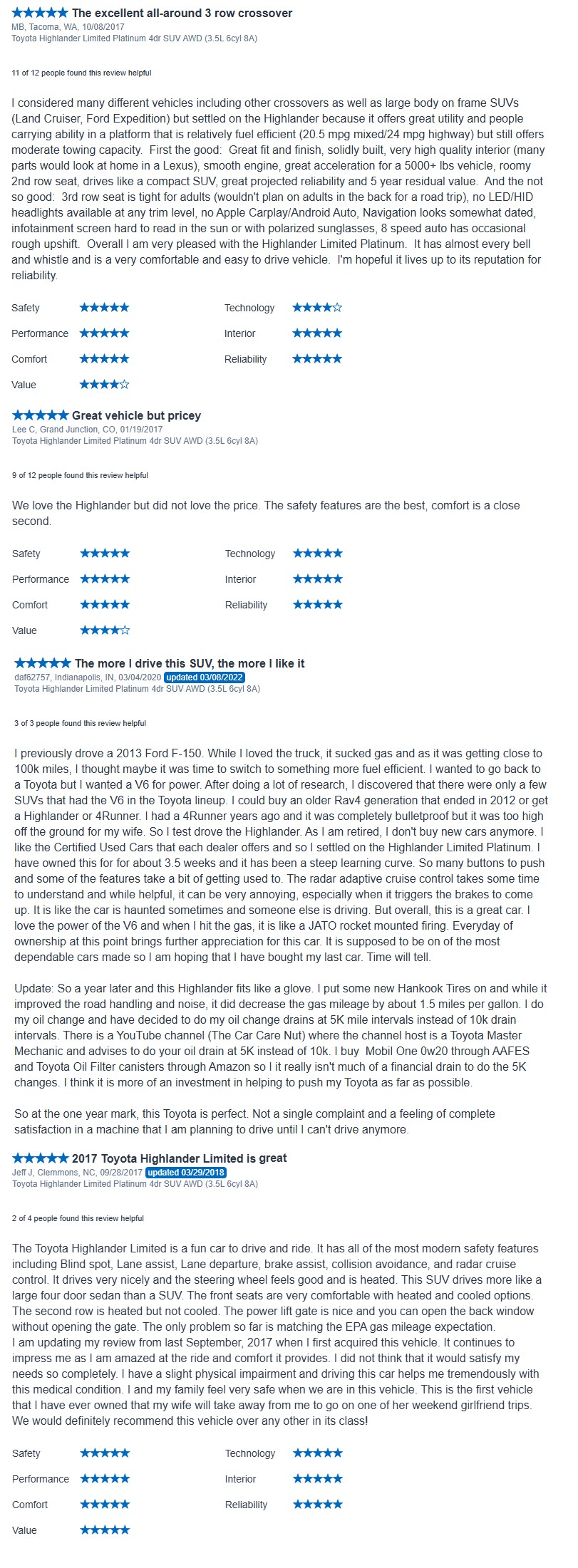 2017 Toyota Highlander Limited Platinum AWD 3.5L V6 6-Spd Auto 3rd Row 147K