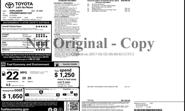 The 2017 Toyota Highlander received excellent safety ratings from the National Highway Traffic Safety Administration (NHTSA), earning an overall 5-star rating that underscores its robust construction and advanced protective technologies. These scores were based on crash tests evaluating occupant safety in frontal, side, and rollover scenarios. The Highlander’s performance is supported by features like Vehicle Stability Control, traction control, and a full suite of airbags, making it a secure choice for families.