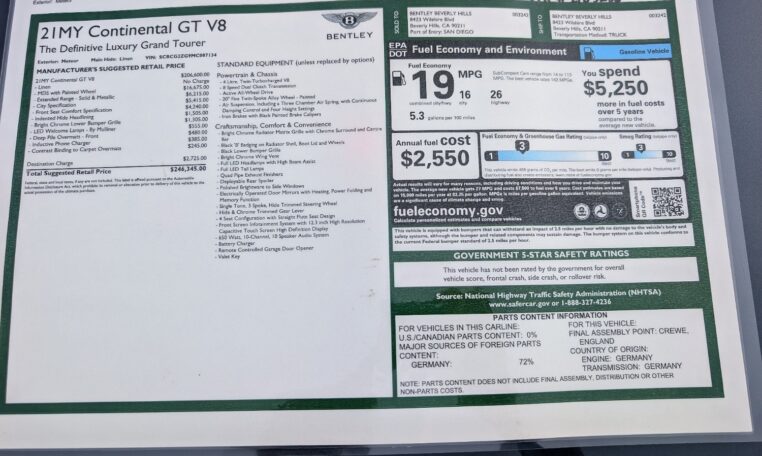 - MSRP & Purchase: Original $246,345 MSRP; bought new from Bentley Beverly Hills.
